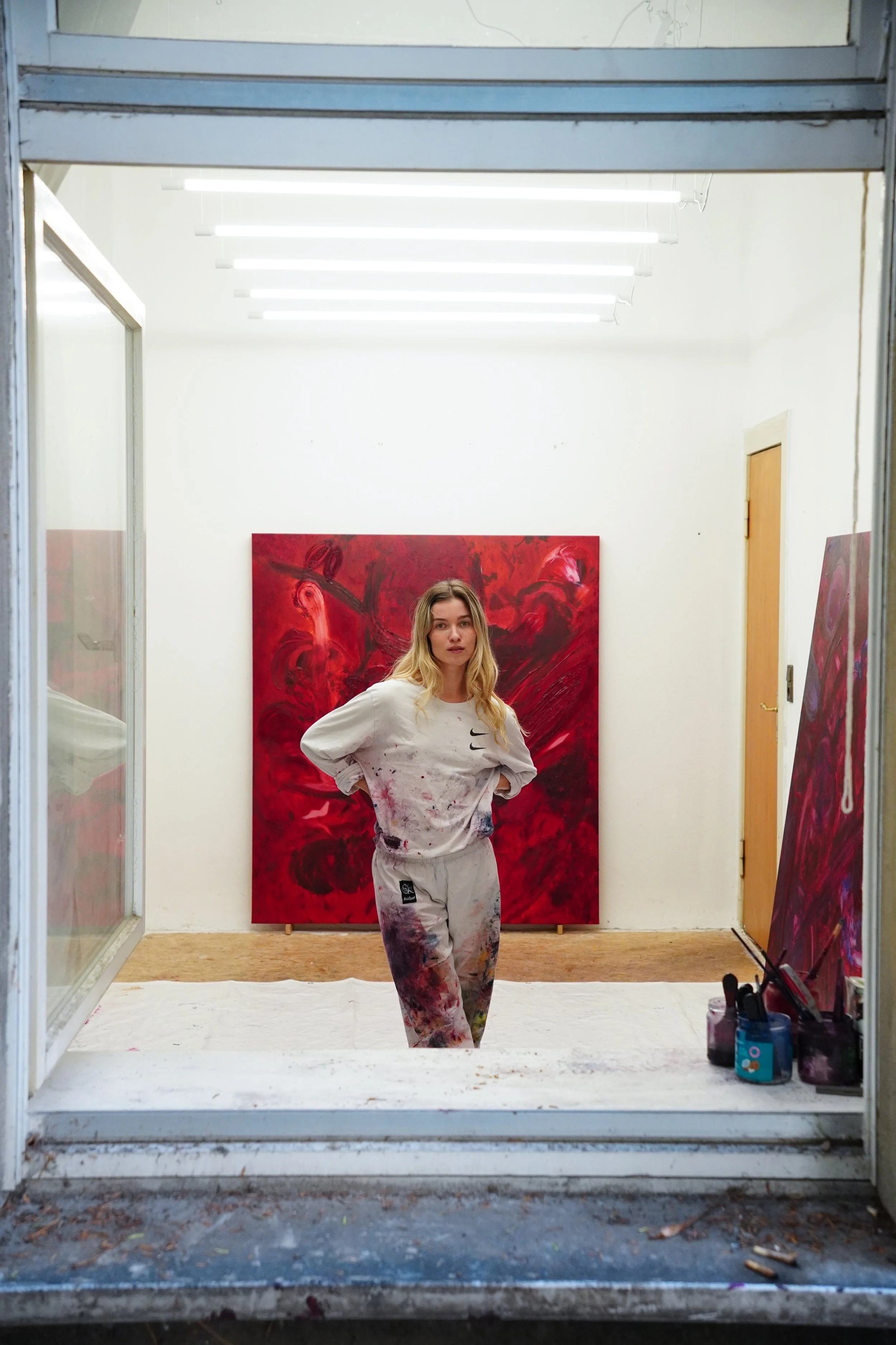Anastasia Shivrina (b. 1991, Italy) is a Russian movement artist and painter whose practice is rooted in dance as both method and philosophy. With over two decades as a contemporary dancer on international stages, Shivrina carries her embodied knowledge of rhythm, gesture, and composition into painting, transforming the ethereal essence of movement into the permanence of visual art. Dance usually remains outside the field of interest of contemporary artists, since it requires not only an understanding of the fundaments of movement and the depth of emotions, but also the ability and preparation to express this fleeting and transitional form of art. Anastasia overcomes this ephemerality by extending the existence of dance, taking it beyond the confines of the “here and now” into the plane of “forever.” Her body is the vehicle, echoing choreographic lines, the rigor of Suprematist geometry, and the emotive force of Abstract Expressionism.